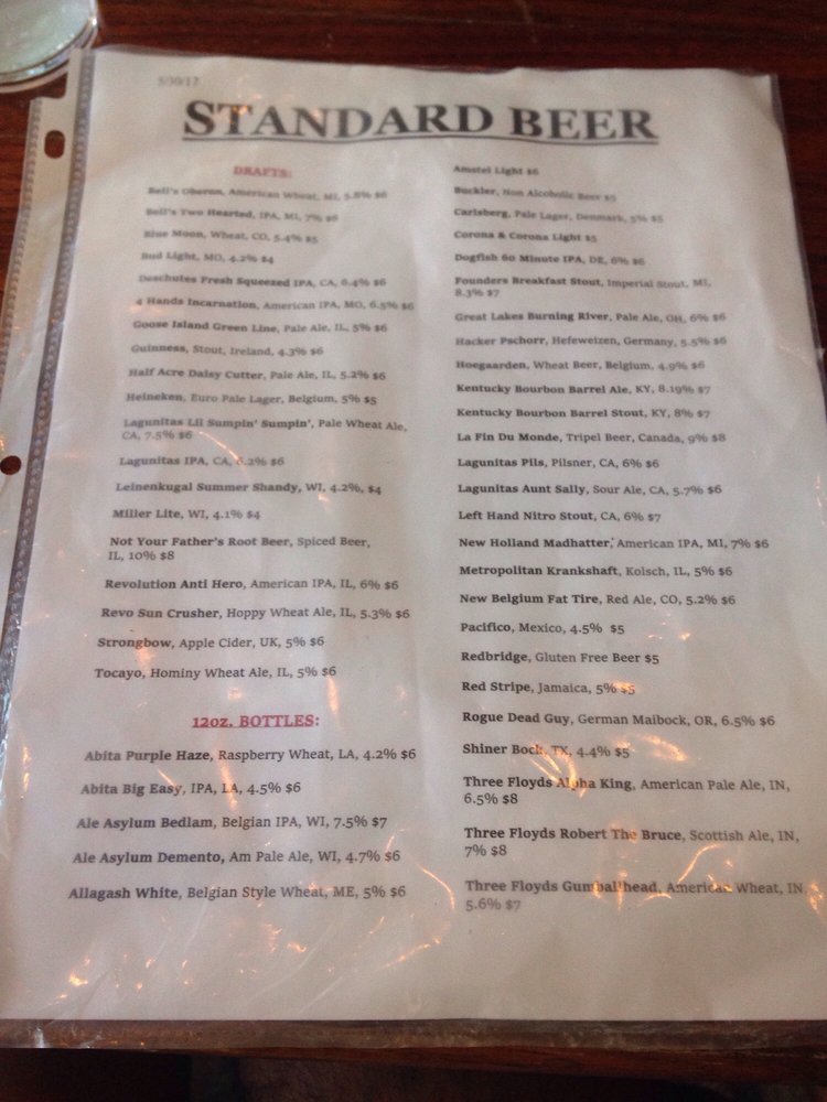 Standard Bar & Grill Menu